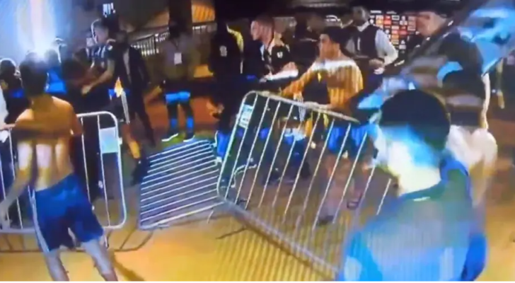 Calciatori, dirigenti, persino responsabili delle forze dell’ordine, sono stati coinvolti in una rissa incredibile negli spogliatoi. Calci, pugni, lavandini e transenne che volano, con la polizia costretta ad usare lo spray al peperoncino.