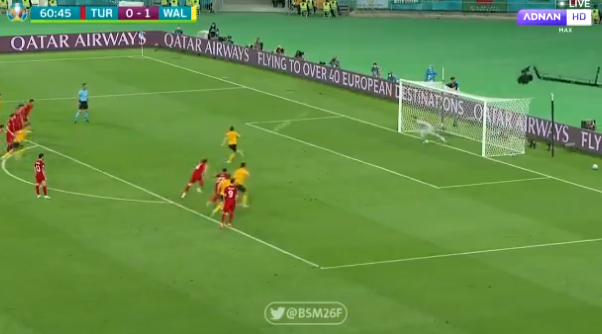 Clamoroso errore di Gareth Bale nella sfida fra Turchia e Galles.