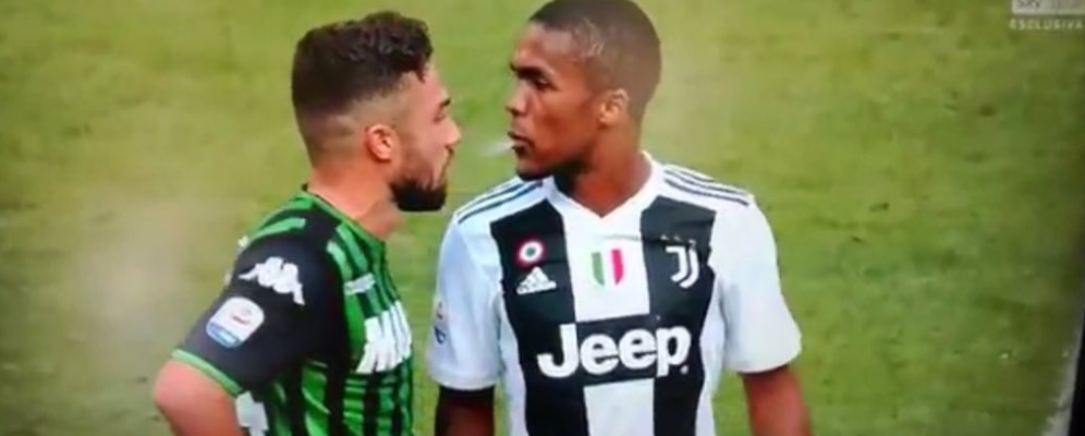 Clamoroso gesto punito con l’espulsione per Douglas Costa. Il brasiliano ha sputato in faccia al giocatore del Sassuolo Di Francesco. Di seguito il video:
