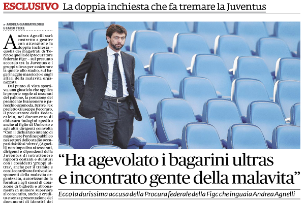 Clamoroso, la Figc accusa Agnelli: “Ha agevolato i bagarini ultras e incontrato mafiosi”