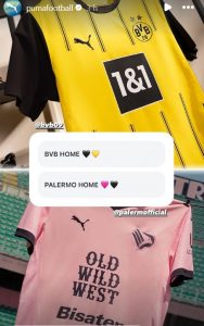 Il Palermo affronta il Borussia Dortmund ma al di fuori di un campo da calcio. Infatti, l’account Instagram “Puma Football” ha lanciato un contest dedicato alle sue divise da gioco sponsorizzate nel 2024-25. La prima maglia rosanero è agli ottavi di finale e affronterà il kit home della squadra tedesca. Nella speranza di poter vedere il Palermo in Serie A e in Europa in un futuro roseo e non troppo lontano, i tifosi palermitani possono votare la loro amata maglia attraverso le Instagram Stories dell’account “Puma Football”.