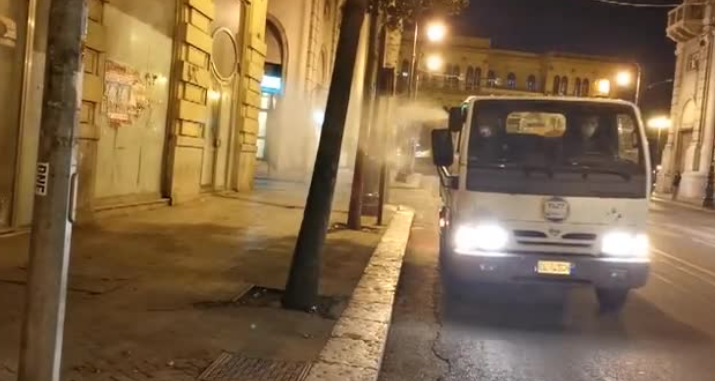 Nel corso della notte, la Rap ha iniziato la sanificazione delle strade di Palermo, operazione che rientra tra quelle in programma per le azioni di contrasto del Coronavirus. Diverse le zone interessante, dalla stazione centrale, fino a Via Roma, piazza Verdi e via Ruggero Settimo, come visibile nel video diffuso da “Gds.it” (CLICCA QUI).