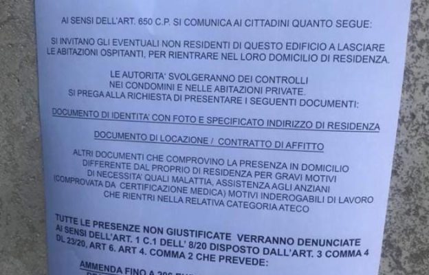 L’emergenza Coronavirus continua in Italia e in Sicilia, la pandemia ha praticamente fermato tutta Europa, ma non frena purtroppo la delinquenza. Infatti secondo quanto riporta “Lasicilia.it” anche a Catania ci sono stati dei finti controlli alle persone che, non domiciliate in un determinato condominio, devono lasciarlo immediatamente, pena denunce, ammende e perfino la reclusione. Tutto ciò agevola i ladri che utilizzano il finto controllo a scopo di furto, soprattutto a discapito delle persone anziane e indifese.