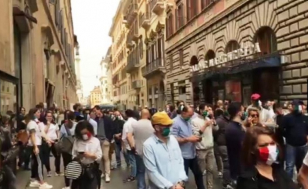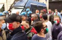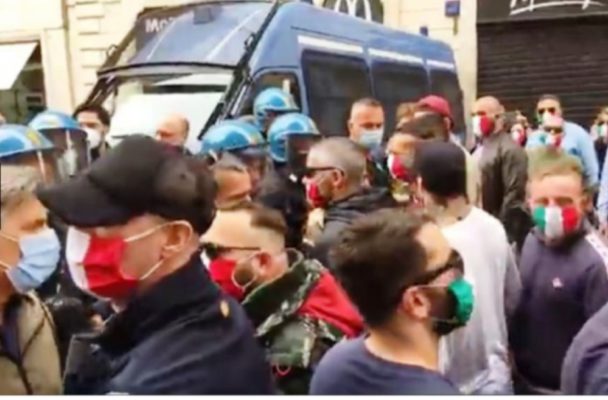 Corteo anche a Roma da parte delle mascherine tricolore“Avevamo dato pubblicamente appuntamento a commercianti, ristoratori, partite iva e lavoratori dipendenti in Piazza del Popolo a Roma – spiega il movimento – La protesta, come già avvenuto nelle settimane scorse era pacifica e i manifestanti, nonostante l’alta partecipazione, si tenevano a distanza di sicurezza così come previsto dalle norme anti covid 19. Mentre ci dirigevamo verso le macchine e le fermate metro più vicine, siamo stati chiusi ad imbuto da due ingenti schieramenti di polizia e carabinieri in assetto anti-sommossa che hanno creato di fatto un assembramento. Questa è una prevaricazione bella e buona – ha dichiarato uno dei manifestanti – La nostra libertà è messa a repentaglio anche da chi dovrebbe tutelare la legalità. E’ assurdo che, nel 2020, lo Stato vada avanti a colpi di dpcm e repressione del dissenso. Indossiamo le mascherine tricolori come simbolo di lotta per la libertà: siamo stufi di un governo che parla solamente, ma non ha ancora erogato la liquidità necessaria per far partire le attività. Non possiamo più tutelare chi lede ogni giorno i diritti e le libertà costituzionalmente garantiti. Le forze dell’ordine ci hanno chiuso la strada bloccando entrambi i lati con militari in assetto anti-sommossa, chiedendo i documenti ai partecipanti e minacciando sanzioni e pene esemplari. Più che l’Italia sembra la Cina”, ha concluso.