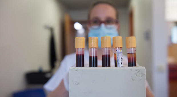 epa08395441 Nursing staff with blood samples of an immunological test among employees of the Regional Hospital of Lugano Civico (Ospedale Regionale di Lugano), taken to determine their exposure to the coronavirus SARS-CoV-2, in Lugano, Switzerland, 30 April 2020 (issued 01 May 2020). EPA/ALESSANDRO CRINARI