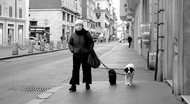 Foto Mauro Scrobogna /LaPresse 13-03-2020 Roma Cronaca covid-19 coronavirus Nella foto: paesaggi romani, via del Corso, camminando con i cani Photo Mauro Scrobogna /LaPresse 13-03-2020 Rome Home covid-19 coronavirus In the picture: Roman landscapes in virus' time, via del Corso, walking with dogs