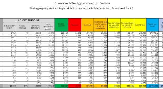 Come di consueto il ministero della Salute, di concerto con l’Istituto Superiore di Sanità e le amministrazioni delle singole regioni, ha diramato il bilancio dell’emergenza coronavirus aggiornato a martedì 10 novembre.