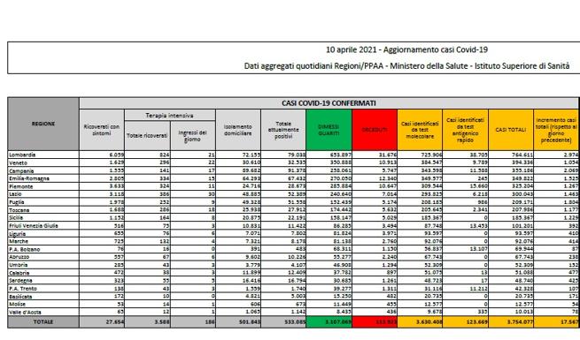 Sono 17.567 i nuovi casi di coronavirus in Italia (ieri sono stati +18.938, qui il bollettino). Sale così ad almeno 3.754.077 il numero di persone che hanno contratto il virus Sars-CoV-2 (compresi guariti e morti) dall’inizio dell’epidemia. I decessi odierni sono 344 (ieri sono stati +718, di cui 460 in 24 ore e 258 pregressi), per un totale di 113.923 vittime da febbraio 2020. Le persone guarite o dimesse sono complessivamente 3.107.069 e 20.483 quelle uscite oggi dall’incubo Covid (ieri +26.175). Gli attuali positivi — i soggetti che hanno il virus — risultano essere in tutto 533.085, pari a -3.276 rispetto a ieri (-7.969 il giorno prima).