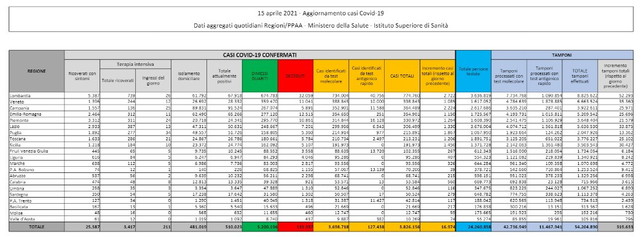 In Italia ci sono 16.974 nuovi casi di coronavirus a fronte di 319.633 tamponi effettuati. Nelle ultime 24 ore sono stati registrati 380 decessi (contro i 469 di mercoledì) per un totale, da inizio pandemia, che arriva a 115.937. I guariti sono 21.220 mentre in terapia intensiva sono ricoverati 3.417 pazienti (in calo di 73 unità nel saldo giornaliero tra entrate e uscite). Il tasso di positività si attesta al 5,3%.
