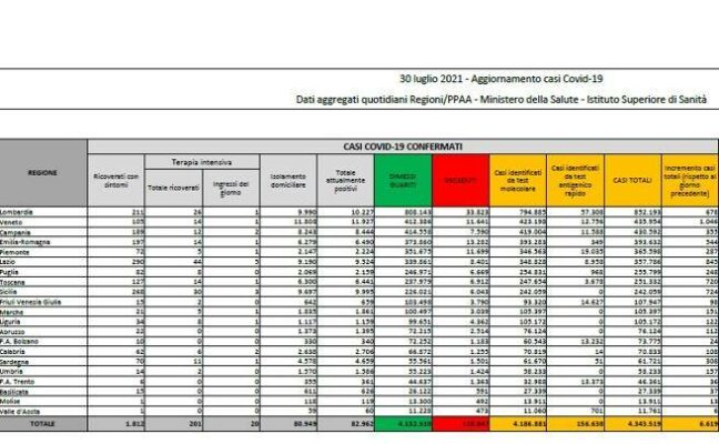 Le vittime sono 128.047 in totale, mentre le terapie intensive sono 201 (+7), con 20 ingressi nelle ultime 24 ore.