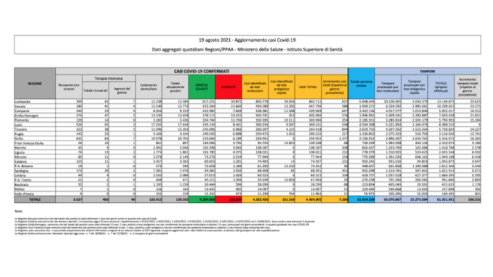 Anche oggi, 19 agosto 2021, arriva il consueto bollettino relativo al Coronavirus: