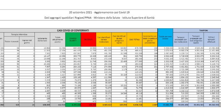 I numeri della pandemia Sono in calo i ricoveri in terapia intensiva: 7 in meno rispetto a ieri. Il totale dei ricoverati in area critica è di 523 pazienti. Nelle ultime 24 ore i guariti sono stati 3.383.