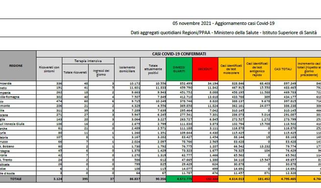 Sono 6.764 i nuovi casi di coronavirus in Italia (ieri sono stati 5.905, qui il bollettino). Sale così ad almeno 4.795.465 il numero di persone che hanno contratto il virus Sars-CoV-2 (compresi guariti e morti) dall’inizio dell’epidemia. I decessi odierni sono 51 (ieri sono stati 59), per un totale di 132.334 vittime da febbraio 2020. Le persone guarite o dimesse sono complessivamente 4.572.775 e 3.730 quelle uscite oggi dall’incubo Covid (ieri 3.754). Gli attuali positivi — i soggetti che hanno il virus — risultano essere in tutto 90.356, pari a +2.980 rispetto a ieri (+2.089 il giorno prima).