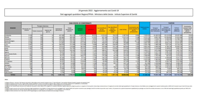 Nelle ultime 24 ore il numero di decessi con diagnosi di Coronavirus è arrivato a 352, nei dati pubblicati ieri erano 227. Il numero totale di vittime dall’inizio della pandemia è fissato così a 143.875. I contagi, sempre nelle ultime 24 ore, sono stati 77.696, ieri invece erano 138.860. I casi totali dall’inizio della pandemia sono così arrivati a 10.001.344. Il tasso di positività invece è al 15,0 per cento, ieri era al 14,9 per cento.