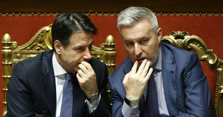 Foto Vincenzo Livieri - LaPresse 10-09-2019 - Roma Politica Senato. Voto di fiducia. Nella foto Giuseppe Conte, Lorenzo Guerini Photo Vincenzo Livieri - LaPresse 10-09-2019 Rome Politics Senate. Vote of confidence in the new government. In the picture Giuseppe Conte, Lorenzo Guerini
