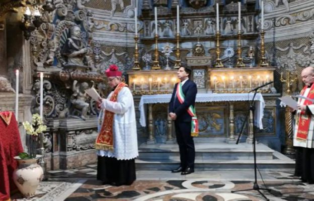 Coronavirus: l’arcivescovo di Catania prega davanti al Velo di Sant’Agata (VIDEO)