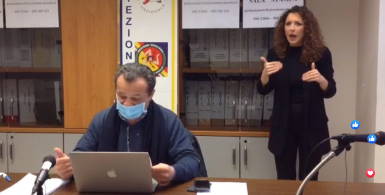 Ad apertura della diretta il sindaco ha dato lettura di una nota dell’Ente Nazionale sordi (ogni giorno infatti c’è un’interprete che traduce nel linguaggio dei segni). In particolare la nota fa riferimento al dileggio che su facebook sta avvenendo nei confronti delle interpreti che ogni giorno s’impegnano. Ironizzare può anche andar bene (vedi la traduzione del “babbio”), ma non si devono ledere la dignità ed i diritti dei non udenti (nè tantomeno di chi lavora per la collettività).
