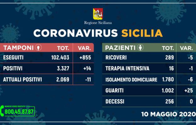 Dall’inizio dei controlli, i tamponi effettuati sono stati 102.403 (+855 rispetto a ieri), su 91.748 persone: di queste sono risultate positive 3.327 (+14), mentre attualmente sono ancora contagiate 2.069 (-11), 1.002 sono guarite (+25) e 256 decedute (0).