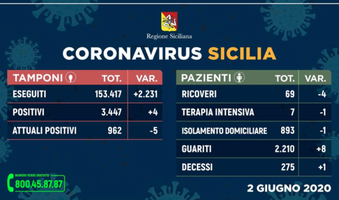 Questo il quadro riepilogativo della situazione nell’Isola, aggiornato alle ore 15 di oggi, in merito all’emergenza #Coronavirus, così come comunicato dalla Regione Siciliana all’Unità di crisi nazionale.