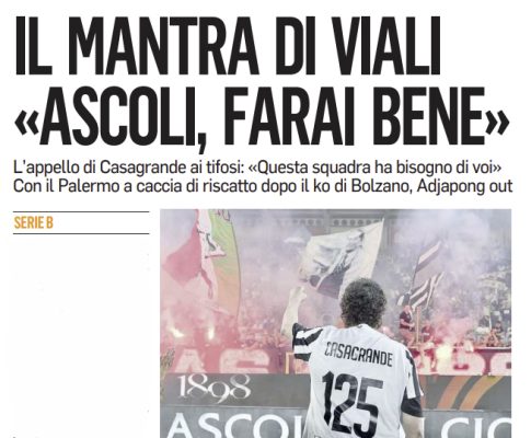 L’edizione odierna del “Corriere Adriatico” si sofferma sulla gara che il Palermo giocherà contro l’Ascoli.