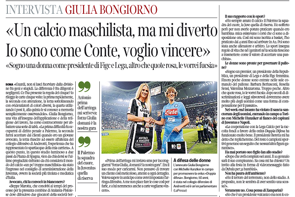 Corriere della Sera: “Giulia Bongiorno, membro del consiglio amministrativo della Juve dal cuore rosanero: «Tifo per il Palermo e ringrazierò sempre Zamparini, ecco perchè…»”