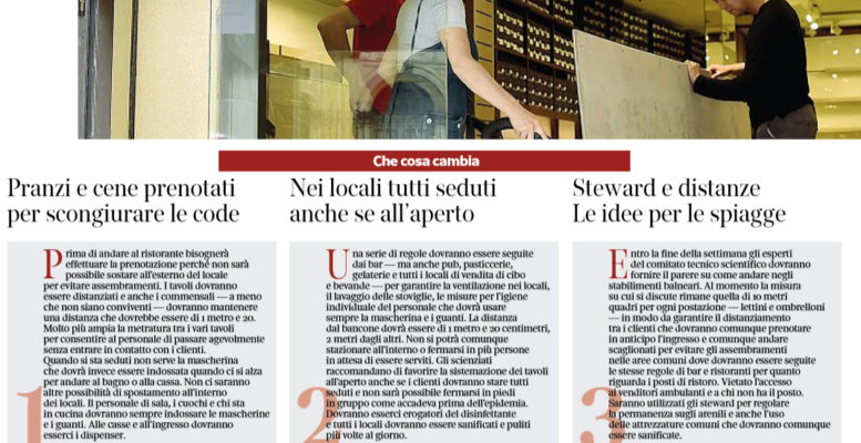 Corriere della Sera: “Italia. Cosa cambia per le attività verso la riapertura. Le regole degli scienzati”