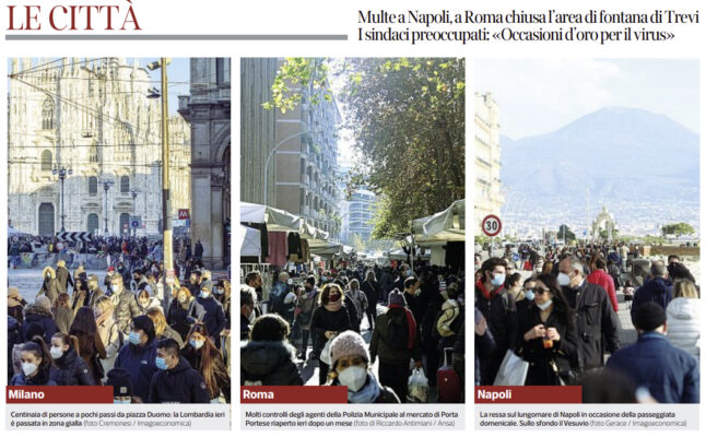 L’edizione odierna del “Corriere della Sera” si sofferma sugli assembramenti nel periodo natalizio.