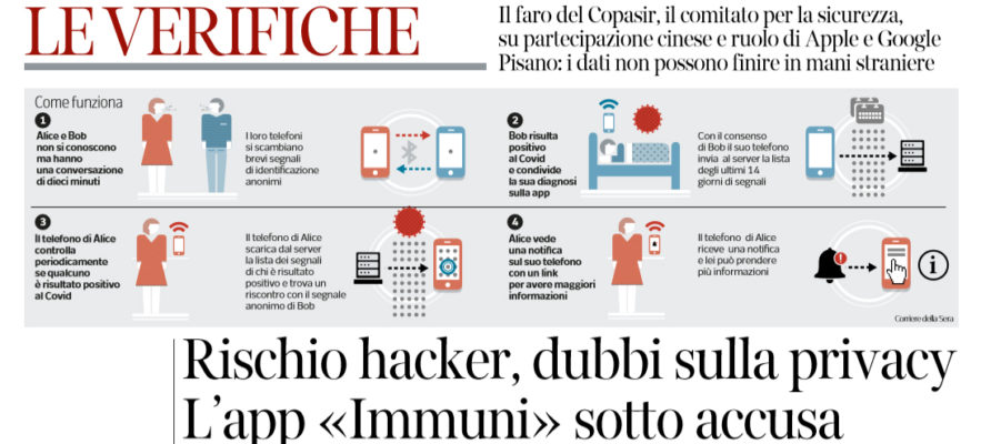 Corriere della Sera: “Rischio hacker, dubbi sulla privacy. L’app «Immuni» sotto accusa”