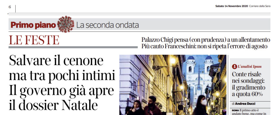 Corriere della Sera: “Salvare il cenone ma tra pochi intimi. Il governo già apre il dossier Natale”