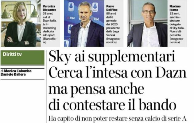 Corriere della Sera: “Sky ai supplementari. Cerca l’intesa con Dazn ma pensa anche di contestare il bando”