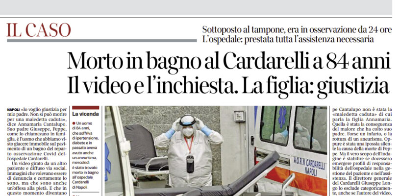 Corriere della Sera: “Sottoposto al tampone, era in osservazione da 24 ore. Morto in bagno al Cardarelli a 84 anni. Il video e l’inchiesta. La figlia “Giustizia”