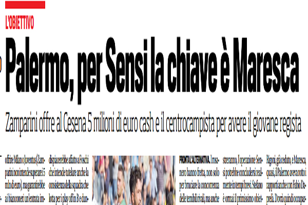 “Sempre più Sensi per il Palermo. Che rispetto alle altre pretendenti eccellenti che stanno corteggiando il giovane play del Cesena, ha una serie di piccoli vantaggi che possono rivelarsi decisivi. Innanzitutto la volontà di prenderlo e pagarlo subito, dando una notevole boccata d’ossigeno alla pesante situazione finanziaria dei romagnoli. La cifra per cui si tratta sarebbe probabilmente minore di quella che potrebbero offrire Milan o Juventus (Zamparini non intende superare i 5 mln di euro), ma garantirebbe ai bianconeri un’entrata immediata. Lo stesso calciatore, pur tentato dalle big, sa che in rosanero verrebbe per fare il titolare ed anzi per ricoprire un ruolo di grande responsabilità che lo aiuterebbe a maturare nel suo primo impatto con la serie A. In più, c’è una carta segreta che il Palermo potrebbe giocare: il contestuale passaggio al Cesena di Enzo Maresca, ormai fuori dal progetto tecnico rosanero, ma che non dispiacerebbe affatto a Foschi che intende tutelare anche la consistenza della squadra che lotta per i play off in B e dunque cerca un sostituto di valore nel ruolo. Maresca (35 anni) in realtà preferirebbe restare in serie A ed essendo a fine contratto potrebbe accasarsi fin da ora con un altro club, ma soltanto per giocarci nella prossima stagione. Il Palermo contribuirebbe all’ingaggio dell’ex centrocampista del Siviglia, e avrebbe la strada ancora più spianata nella corsa a Sensi”. Questo quanto si legge su “Il Corriere dello Sport”.