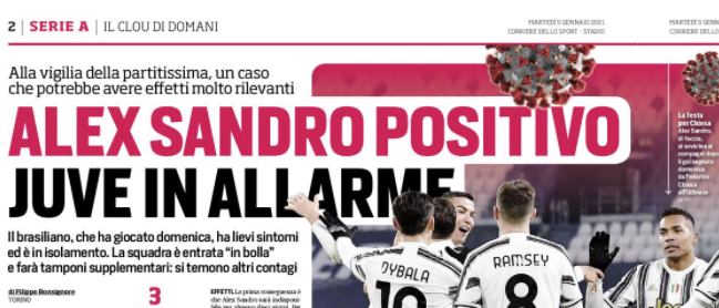 Corriere dello Sport: “Alex Sandro positivo, Juventus in allarme”