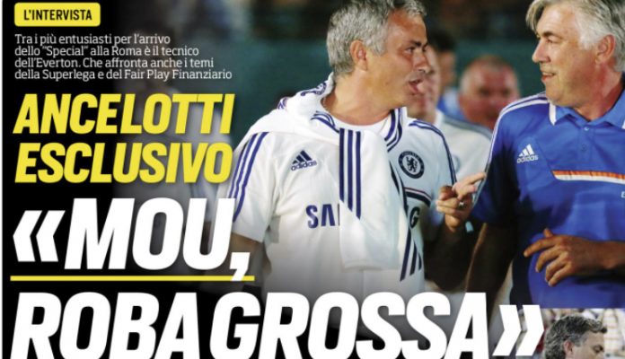 L’edizione odierna del “Corriere dello Sport” riporta le dichiarazioni di Carlo Ancelotti sull’approdo di Mourinho sulla panchina della Roma: