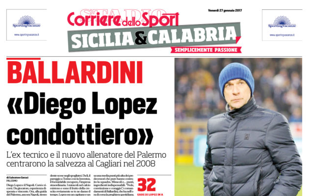 “Diego Lopez e il Napoli. Corsi e ricorsi. Da giocatore, esperienza disperata e vincente. Ora, alla guida del Palermo, ancora Napoli, stesso avversario, altra sfida… impossibile, tra due giorni, tanto per cominciare. 27 gennaio 2008: lui in campo, Ballardini in panchina, Cagliari dieci punti in classifica, come il Palermo, addirittura ultimo. Però, con un finale magico che Ballardini ha sempre raccontato così: «Fu la mia prima vittoria in A e che vittoria! E quante emozioni! Incancellabili. Il Cagliari non meritava di perdere ed era sotto per il gol di Hamsik. Colpito ma non affondato. Mi vedevo già seduto sull’aereo di ritorno. Avevo già perso due partite in casa contro l’Udinese e a Reggio Calabria. Zero punti, zero gol. In tribuna c’era Regno che ancora non lavorava con me, ma seguiva gli allenamenti, accanto al presidente Cellino. La prima di ritorno. Una nuova sconfitta ci avrebbe scavato la fossa. E invece… Il quarto uomo alza il cartello del recupero e vedo: quattro minuti. Titoli di coda di un’avventura che sembrava finita». LICENZIATO? NO! TRIONFO. «Pensavo: domani tutti a casa con la coda fra le gambe. So bene che funziona così. E invece, in quei pochi secondi rimasti, siamo scesi dalla scaletta. La mia storia e quella del Cagliari cambiarono. Al 93′, pareggiammo con Matri e nel recupero del recupero, il colpo di testa di Conti e l’incredibile successo. Regno e Cellino si abbracciarono in tribuna, poi il presidente scese negli spogliatoi. Da lì, il pareggio a Torino con la Juventus, il formidabile recupero, l’impresa straordinaria. I miracoli nel calcio esistono e sono il frutto della crescita ovviamente se te ne danno il tempo. Lopez era un capitano e un condottiero, giocò quella partita da centrale di difesa, un ragazzo perbene, un poco introverso, tutto per la sua professione e per il Cagliari. Ci conquistammo la fiducia dei ragazzi giorno per giorno, prima regnavano pessimismo e rassegnazione. In certi casi i leader sono indispensabili. Un elemento come Lopez fu di straordinaria importanza anche perché si comportava già come un allenatore. Un aiuto prezioso, uno dei pilastri della riscossa assieme a Conti e Storari». LO CHIAMAVANO IL CAPO. Per Lopez, la prima panchina col Palermo, dopo le esperienze di Cagliari e Bologna con un compito alla Ballardini specialista nell’ottenere in corsa una media punti più alta dei predecessori che pure hanno costruito la squadra. Miracoli e… punti, ingredienti indispensabili. “Fede, convinzione e coraggio”, i comandamenti di Ballardini, che ha nell’ora di corsa la preghiera quotidiana. Anche Lopez ha le sue abitudini e non è nuovo a situazioni complicate. A Cagliari prese in mano la squadra nel periodo delle difficoltà di Cellino e di una stadio fantasma; e a Bologna quando ancora l’iscrizione al campionato era in forse. «Periodi di incertezza che solo uno con valori e personalità poteva portare avanti», ricorda Filippo Fusco, oggi direttore sportivo del Verona, che lo volle al Bologna. «Non a caso, a Cagliari lo chiamavano “Su capu”, il capo. Capitano, guida in campo e fuori. Per allenare a Bologna, accettò di rescindere un contratto pluriennale. Episodio che fa capire l’uomo. Una persona seria, con carisma naturale che riesce a mantenere equilibrio nelle condizioni più disperate, anche durante la partita. Diego non alza mai la voce, non ne ha bisogno, si fa voler bene da tutti, è attento e posato sia nelle vittorie che nelle sconfitte. Ha una famiglia bellissima, tre figli meravigliosi nati a Cagliari. A Bologna accettò la sfida e si mise in discussione lasciando per la prima volta la Sardegna ed ebbe successo malgrado l’esonero prima dei play off con Delio Rossi. Da un punto di vista tattico non è integralista e si adatta alle circostanze. Ecco perché il Palermo ha operato la scelta migliore. Poi non è facile capire come finirà. Dipende da troppe cose»”. Questo quanto si legge su “Il Corriere dello Sport”.