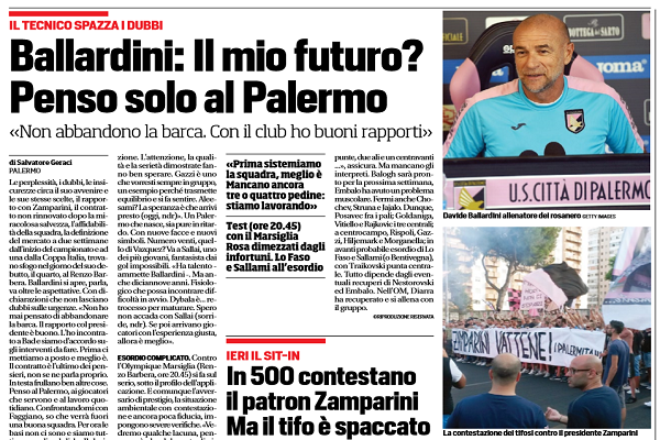 Corriere dello Sport: “Ballardini spazza i dubbi: «Il mio futuro? Penso solo al Palermo. Non abbandono la barca, con il club ho buoni rapporti»”