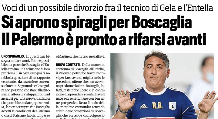 L’edizione odierna del “Corriere dello Sport” si sofferma sulla panchina del Palermo, con Boscaglia che torna prepotentemente in cima alla lista dei candidati.