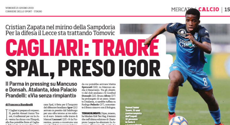 Corriere dello Sport: “Cagliari-Traoré. Spal, preso Igor” – tutte le trattative del giorno in serie A