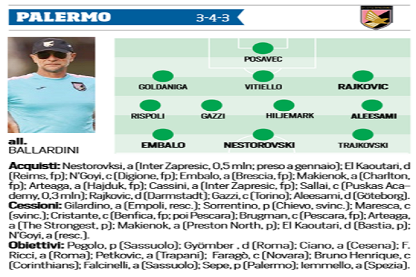 e Assane Gnoukouri (19) dall’Inter, per il centrocampo. LE ROMANE. La Lazio è ormai ai dettagli per Bastos (24), difensore del Rostov: operazione da 6,5 milioni che si può considerare praticamente ufficiale. Per il ruolo di esterno, sfuma Paul-Georges Ntep (24) e prende quota Alessio Cerci (29). Mentre Bruno Peres (26) alla Roma è un affare da considerarsi fatto: una operazione circa 15 milioni. E’ atteso tra oggi e domani. ALTRE OPERAZIONI. Il Torino a questo punto spingerà sull’acceleratore per chiedere alla Sampdoria Lorenzo De Silvestri (28), che con il tecnico serbo ha già lavorato. La Sampdoria ha parlato con il Palermo del regista svedese Oscar Carl Niclas Hiljemark”. Questo quanto si legge sull’edizione odierna de “Il Corriere dello Sport”.