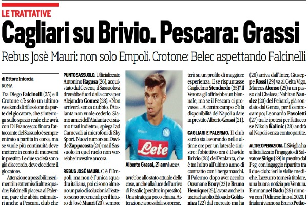 Corriere dello Sport, calciomercato serie A: “Palermo addio a Lazaar-Gonzalez. Cagliari su Brivio. Pescara: Grassi”