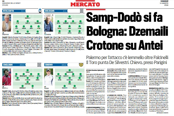 Corriere dello Sport, calciomercato serie A: “Samp-Dodò si fa. Bologna: Dzemaili. Crotone su Antei. Palermo, per l’attacco c’è Iemmello oltre Falcinelli”