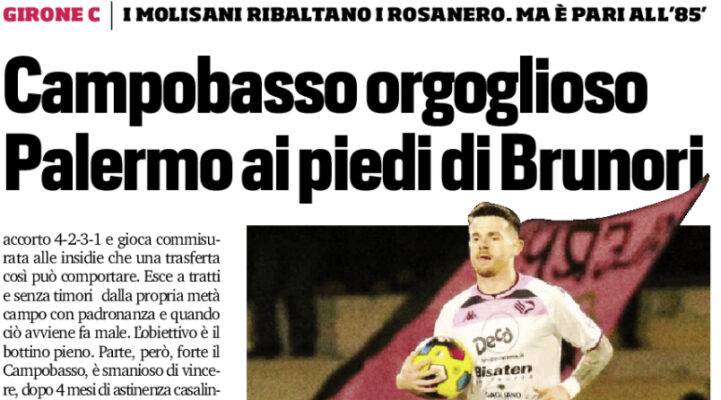 Corriere dello Sport: “Campobasso orgoglioso. Palermo ai piedi di Brunori”