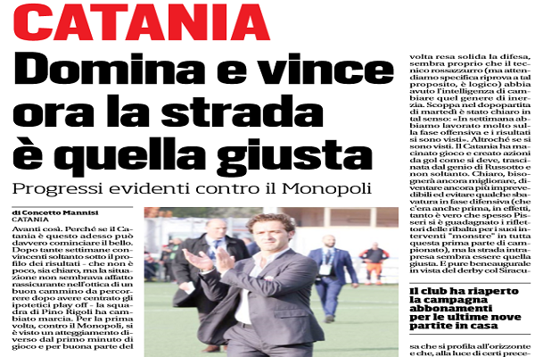 Corriere dello Sport: “Catania, domina e vince. Ora la strada è quella giusta”