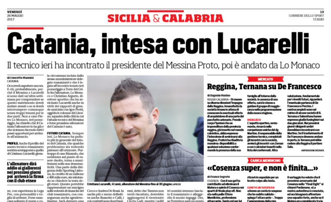 Corriere dello Sport: “Catania, intesa con Lucarelli. Il tecnico ieri ha incontrato il presidente del Messina Proto, poi è andato da Lo Monaco”