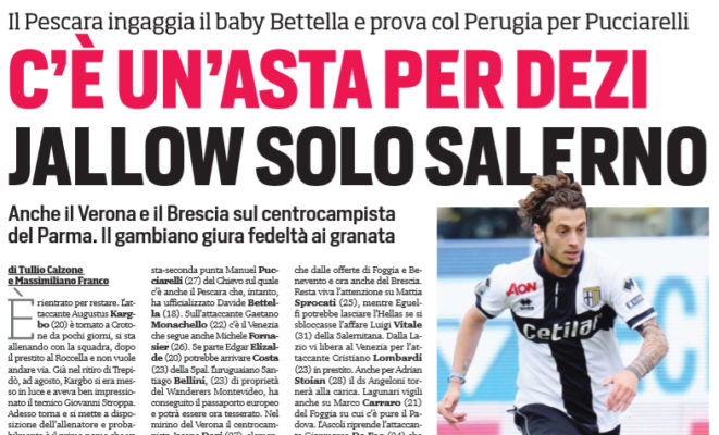 Corriere dello Sport: “C’è un asta per Dezi. Jallow solo Salerno. Tutte le trattative del giorno in serie B”