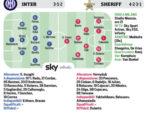 Proprio quest’ultimo è l’errore da non commettere di nuovo stasera perché lo Sheriff dall’alto dei suoi 6 punti non va certo considerato un avversario battibile senza sforzarsi. «Non ha vinto due volte per caso contro il Real e lo Shakhtar e arriverà a San Siro sulle ali dell’entusiasmo. Mi aspetto una formazione organizzata, che si difenderà bassa e sfrutterà le ripartenze. Bisognerà essere bravi ad attaccare, ma anche a non perdere mai le misure. Ci vorranno cattiveria, aggressività, concentrazione, intelligenza e lucidità per cambiare il trend in Europa».