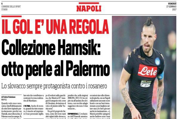 Corriere dello Sport: “Collezione Hamsik, otto perle al Palermo. Quando vede rosa e nero, carica. Quell’abbinamento di colori deve ispirarlo particolarmente”