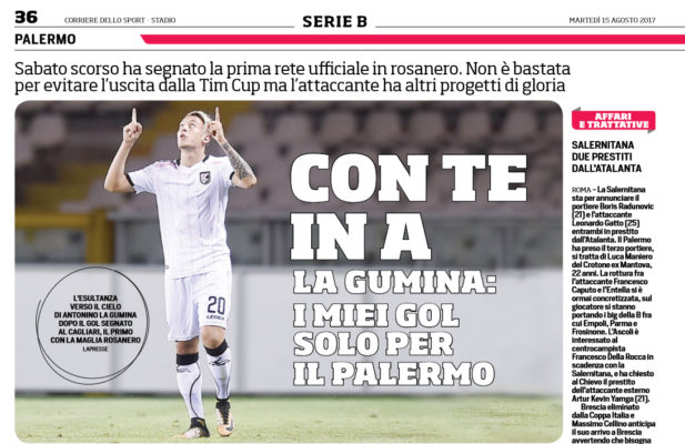 Corriere dello Sport: “Con te in A. La Gumina «I miei gol solo per il Palermo»”