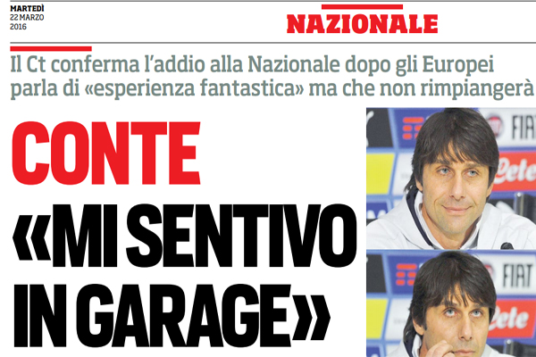 Corriere dello Sport: “Conte: «Mi sentivo in garage. Ho bisogno di sentire l’odore dell’erba. Altri due anni così non li potrei sopportare»”