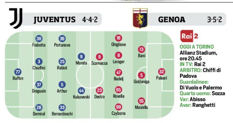 Corriere dello Sport: “Coppa Italia, ottavi di finale. Stasera Juventus-Genoa, le probabili formazioni”